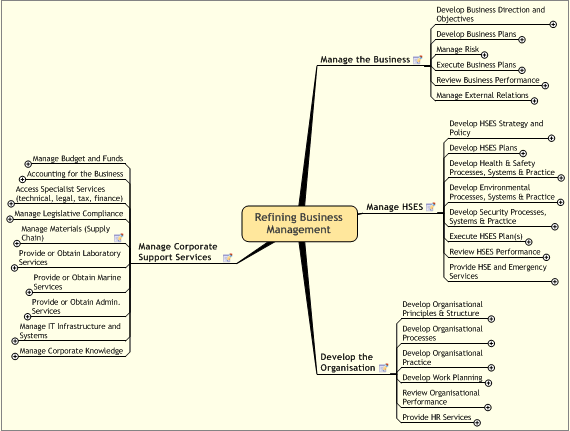 The Refining Business Management Self Assessment is a high level summary of some of the most critical processes, systems and practices that a refinery must have in place and is drawn from our comprehensive Refining Business Management Business Process model. Each of the elements provided in the model represents a critical business process, system or practice - most can also be called "best practice". A top performing refinery would be expected to have all or, at least most, of these elements as well established practices within the business.